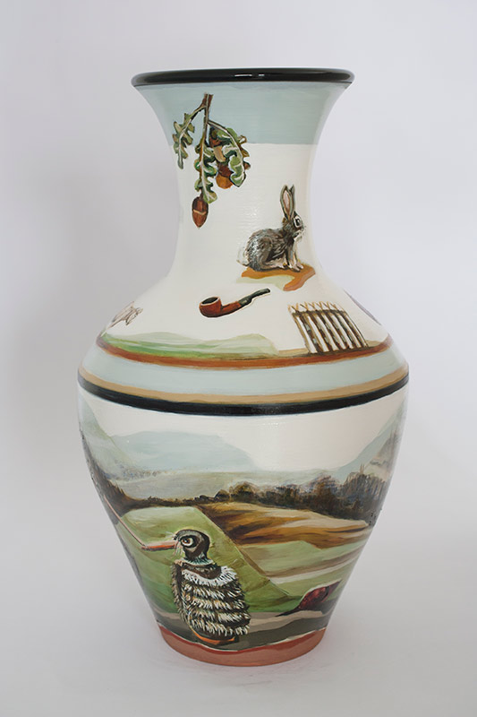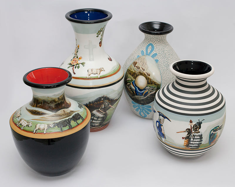 We were invited to be part of a group exhibition “Potters & Painters” and made four vases. Although we have had four joint shows together since 2010, this was our first time collaborating on the same pieces. Having worked closely together on exhibitions over the past five years, we have developed a sensitivity for each other’s work.
