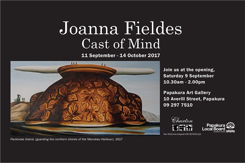 Papakura Art Gallery presents a new exhibition of oil paintings by artist Joanna Fieldes, with works selected from the last 10 years of her art practice. Recent works are based on both south and west Auckland locations. Those works are accompanied by landscape paintings based on her memory of places across New Zealand. These paintings provide a backdrop for a cast of characters, who combine and merge their shape with iconic New Zealand ceramics. These hybrid creatures are bound by the push and pull of their relationships.